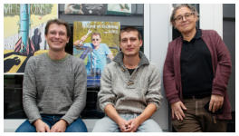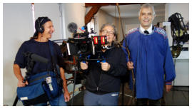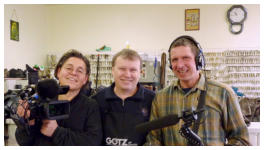 Mit Tontechniker Jürgen Haller und Protagonist Hans Martin Weber beim Dreh im Schwenninger Heimatmuseum.
